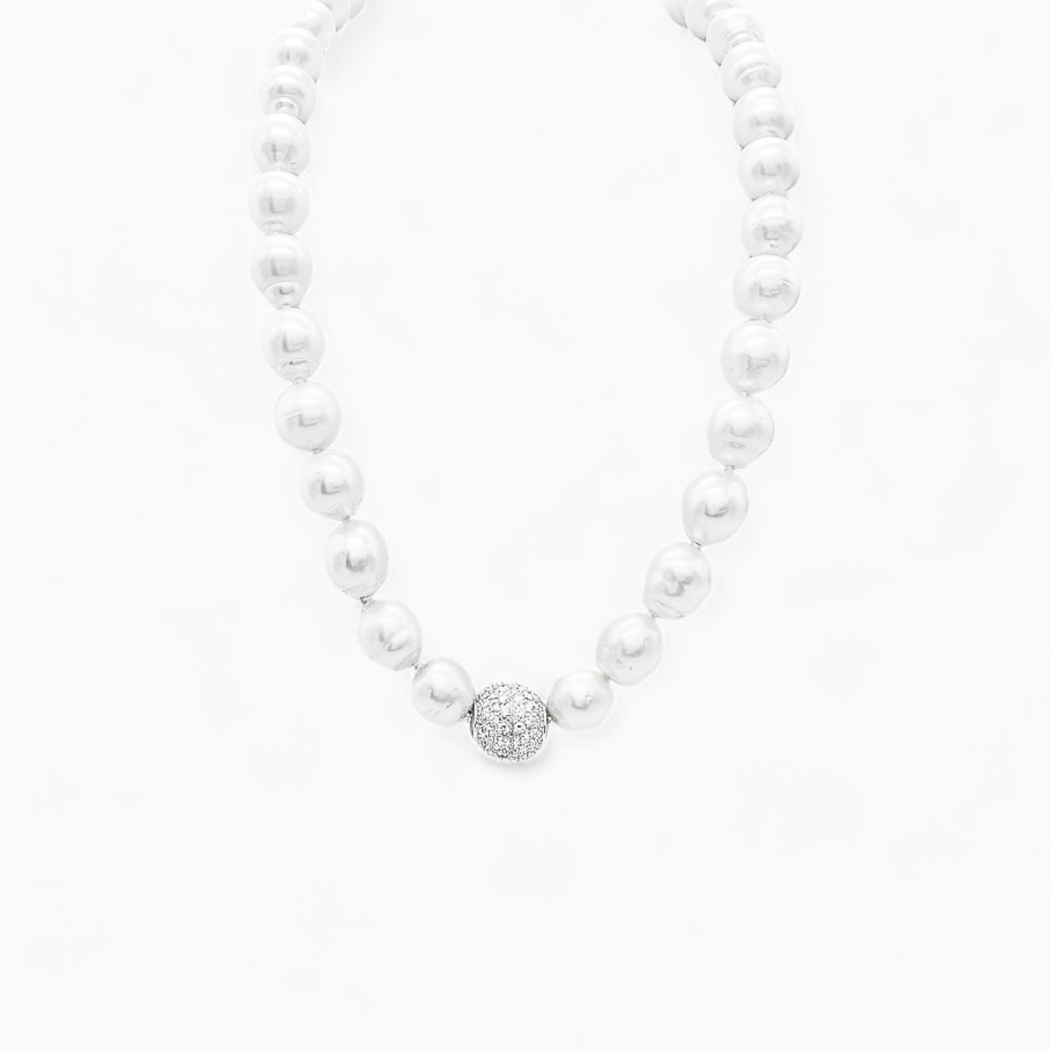 |Complimented by a pave set 18 karat white gold diamond ball clasp
